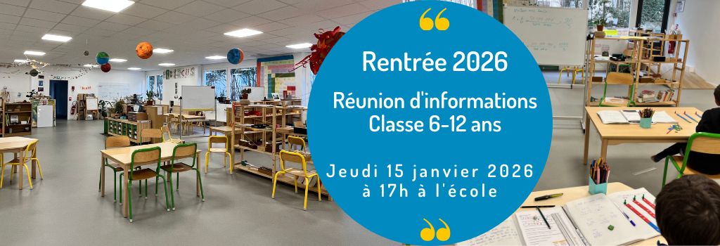 1 classe 6-12 ans : l’école accueille des enfants issus d’une scolarité Montessori ou d’autres structures. Une équipe composée d’éducateurs Montessori AMI (francophone et anglophone) et d’une intervenante en sciences et vie de la Terre, accompagne les enfants dans leurs apprentissages dans un environnement Montessori bilingue anglais et dans le respect du programme de l’Éducation nationale.